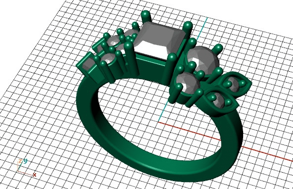 Our next steps were to remove all the diamonds from the old rings, clean them and get measurements. From there, we took our sketch to a working model in the computer which the client could see. This is known as a computer aided design rendering.