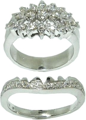 Wave Diamond Wedding Band This band shows how we fit next to a ring that has a very uneven edge. This method eliminates any gap of holes between the two rings. Share This Item email item print item