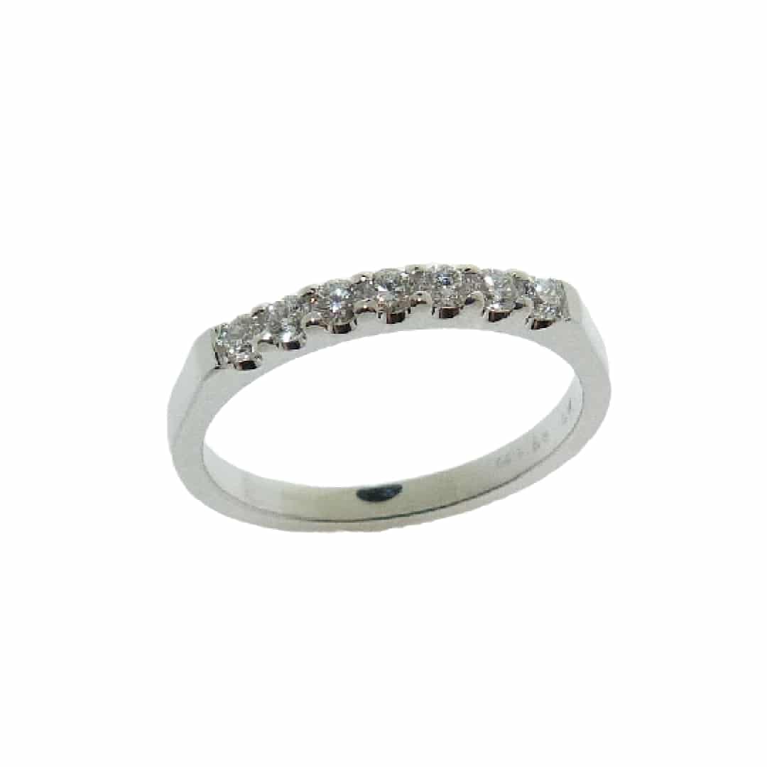 14 karat white gold band with 7 = 0.21cttw G/H, SI round brilliant cut diamonds.