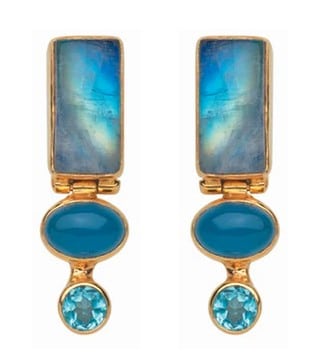 Sterling silver & 22K vermeil drop earrings with blue rainbow moonstone, blue agate and baby blue topaz.