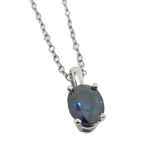 14K White gold pendant set with one 0.289 carat blue oval sapphire.