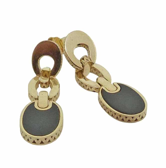 14K Yellow gold oval dangle links with black onyx.