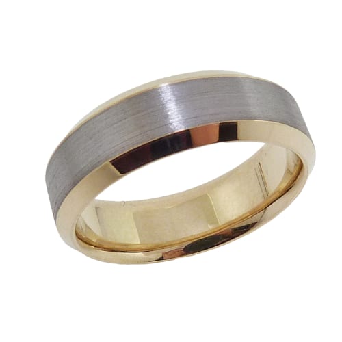 14K Yellow gold and tantalum men’s beveled edge wedding band, size 10, 7mm width.