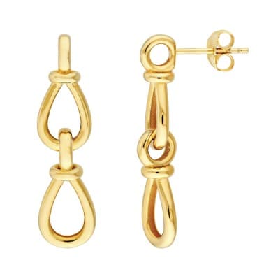 14K Yellow gold teardrop link dangle stud earrings.